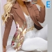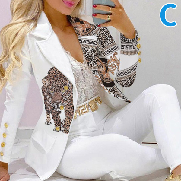 Make your wardrobe more colorful by adding this two-piece set. Its chic printed details make it look so eye-catching. Including a long sleeve slim fit blazer coat and a high waist pants,this two-piece set would offer you a delightful and wonderful day.