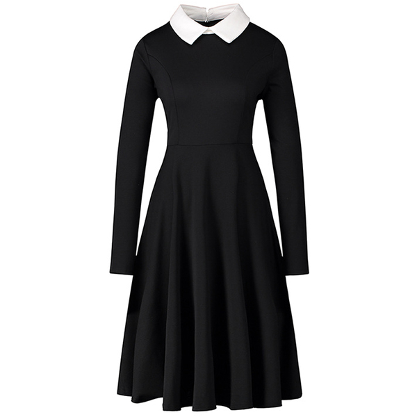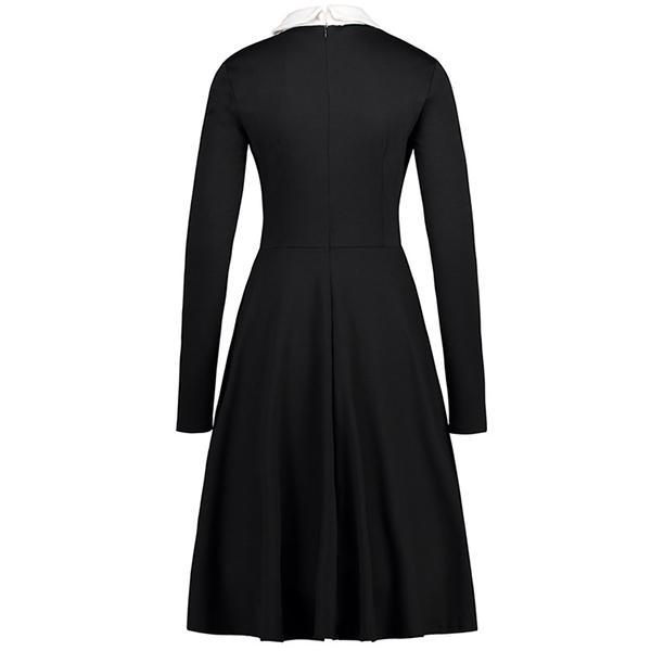 For your busy workdays when you have no time to think about what to wear,then you can just have a try this dress. The contrast color POLO collar design breaks the simple,dull design style,while the lean,fit silhouette design can showcase your slender figure. You can wear it alone or match with your jackets,cardigans and overcoats when the days get cold.