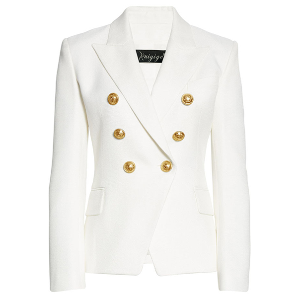 For some formal occasions,you can just have a look at this delicate suit coat. Solid color tone design makes it look elegant and generous,while the double-breasted and irregular hem design break the tedious design style. You can match with your suit pants and favourite heels for a confident and elegant working look.