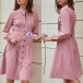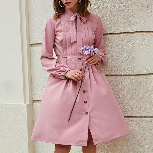 If you wanna a sweet and delicate working look,you can just turn to this shirt dress for help. Solid color style,the lace-up bow-knot collar design and sweet pink tone can enhance your feminine appeal. You can simply matching it with your favourite heels,then you can look beautiful enough!