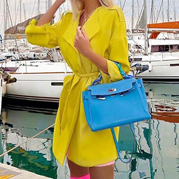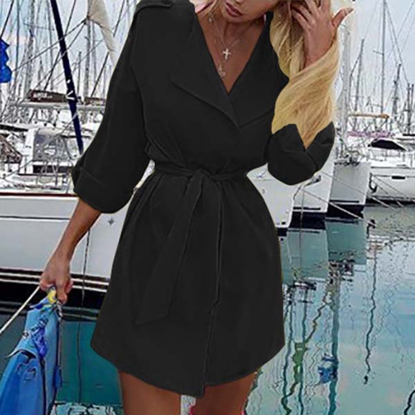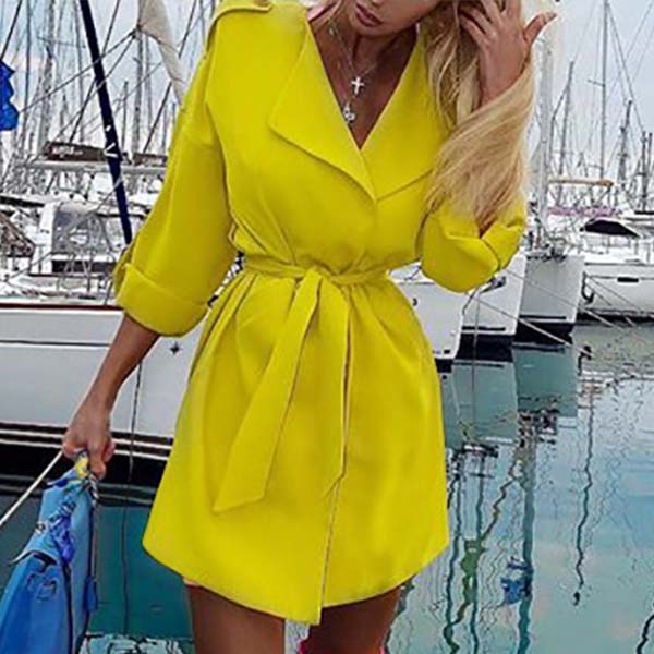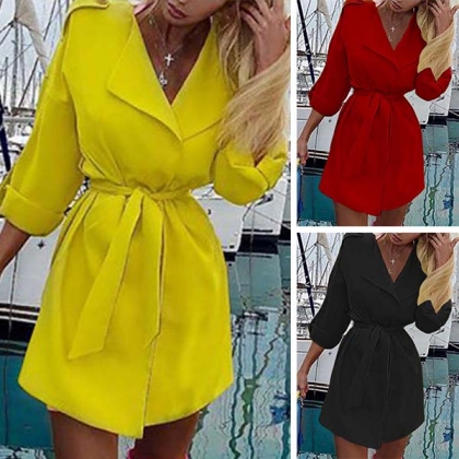 For your busy workdays,this shirt dress is a good choice. It features a solid color,finished with long sleeve and lapel design,simple,delicate yet stylish. The waist strap design can help highlight your slender figure. Just need to match with your favourite shoes,then you can have an elegant and charming work look!