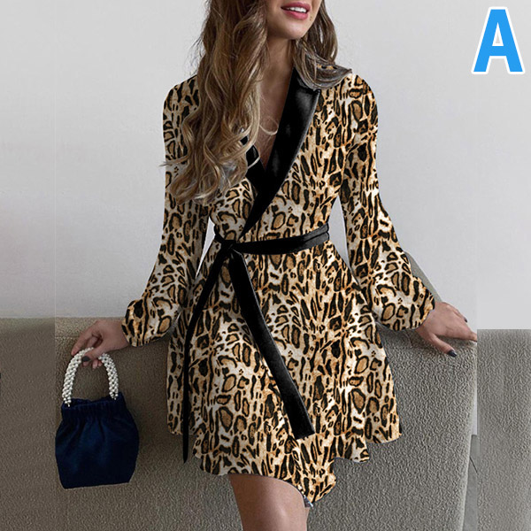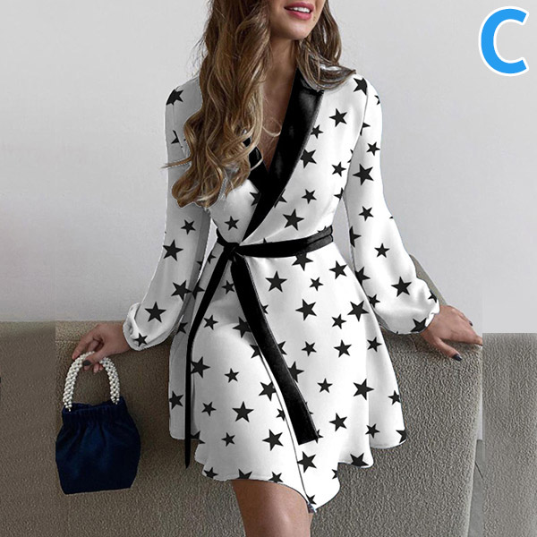 Thanks to the chic and eye-catching printed details,this dress can help you gain more eyes. Finished with long sleeve,lapel and tie-belt design at the waist part,which can better showcase your waistline and figure.No matter for your workdays or weekend out,this dress can be your wise choice.