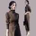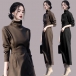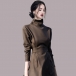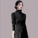 OL Style Long Sleeve Mock Neck High Waist Lace-up Slim Fit Dress