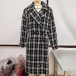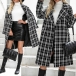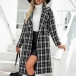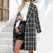 OL Style Long Sleeve Notched Lapel Double-breasted Houndstooth Windbreaker Coat