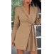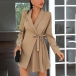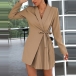 OL Style Long Sleeve Notched Lapel Pleated Hem Solid Color Suit Dress