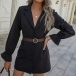 OL Style Long Sleeve Notched Lapel Solid Color Single-breasted Suit Dress