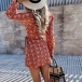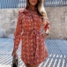 OL Style Long Sleeve PLO Collar Lace-up Printed Shirt Dress