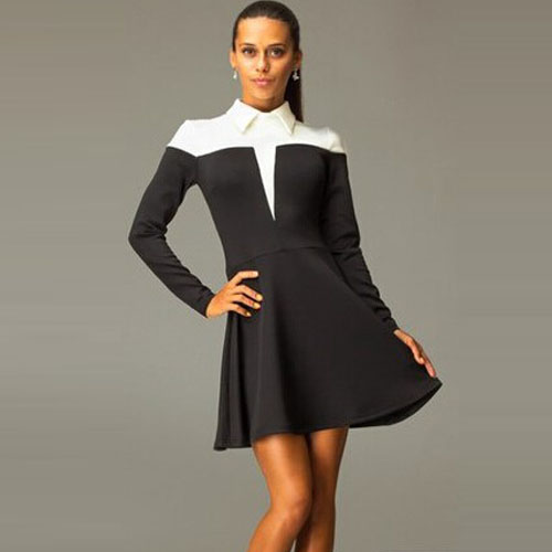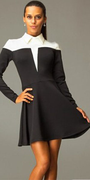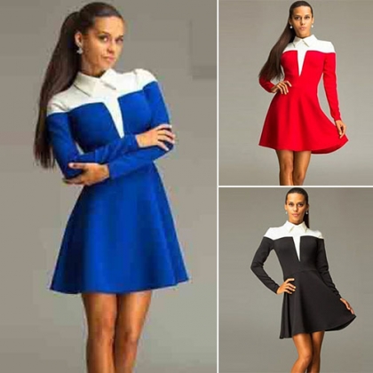 Contrast color style,completed with a POLO collar,long sleeves and high waist design,