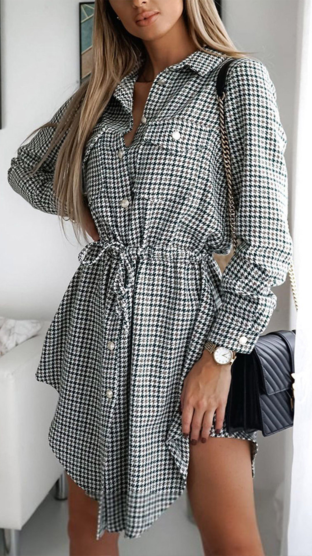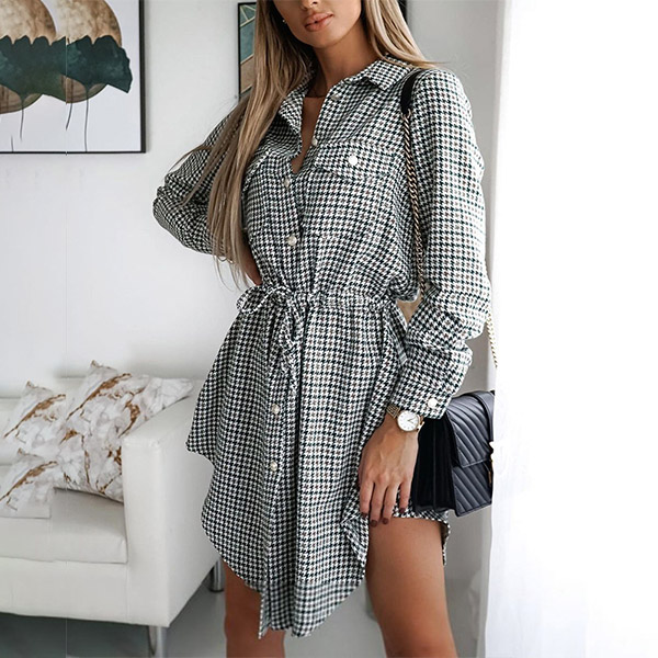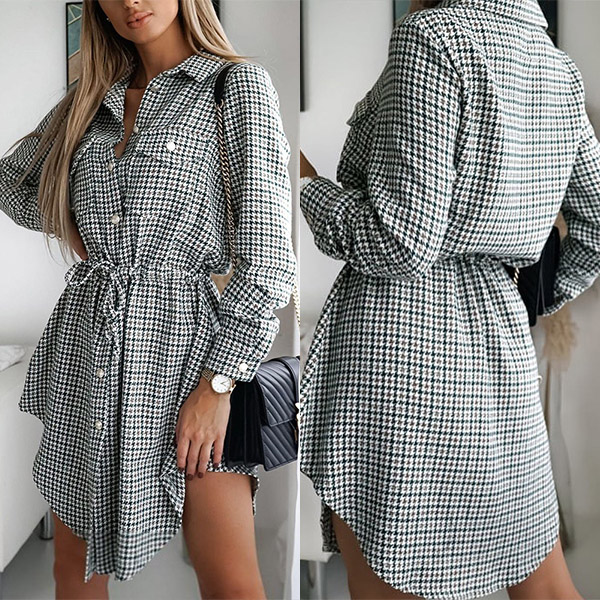 For your busy workdays when you don't know what to wear,then you can just have a look at this shirt dress. The plaid element design makes it look so stylish and popular. Finished with long sleeve,POLO collar and drawstring waist,this shirt dress is sure to give you a cozy yet stylish daily style.