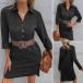 Your busy working routine can be much easier if you have this shirt dress in your team. Comes with a classic yet flattering black tone,finished with long sleeve,POLO collar and front button details,this short dress is a good weapon to offer you a delicate yet stylish daily look. When adding a waistband,you can look more charming and attractive.