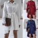 OL Style Long Sleeve POLO Collar High-low Hem Shirt Dress