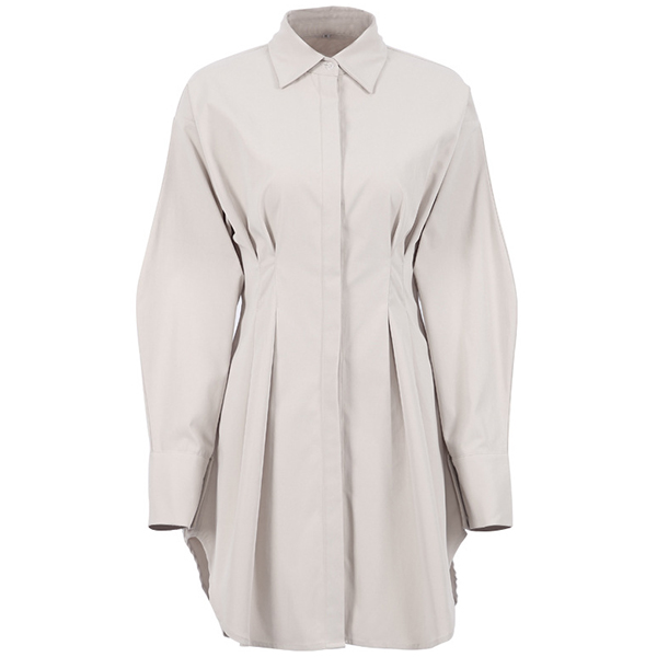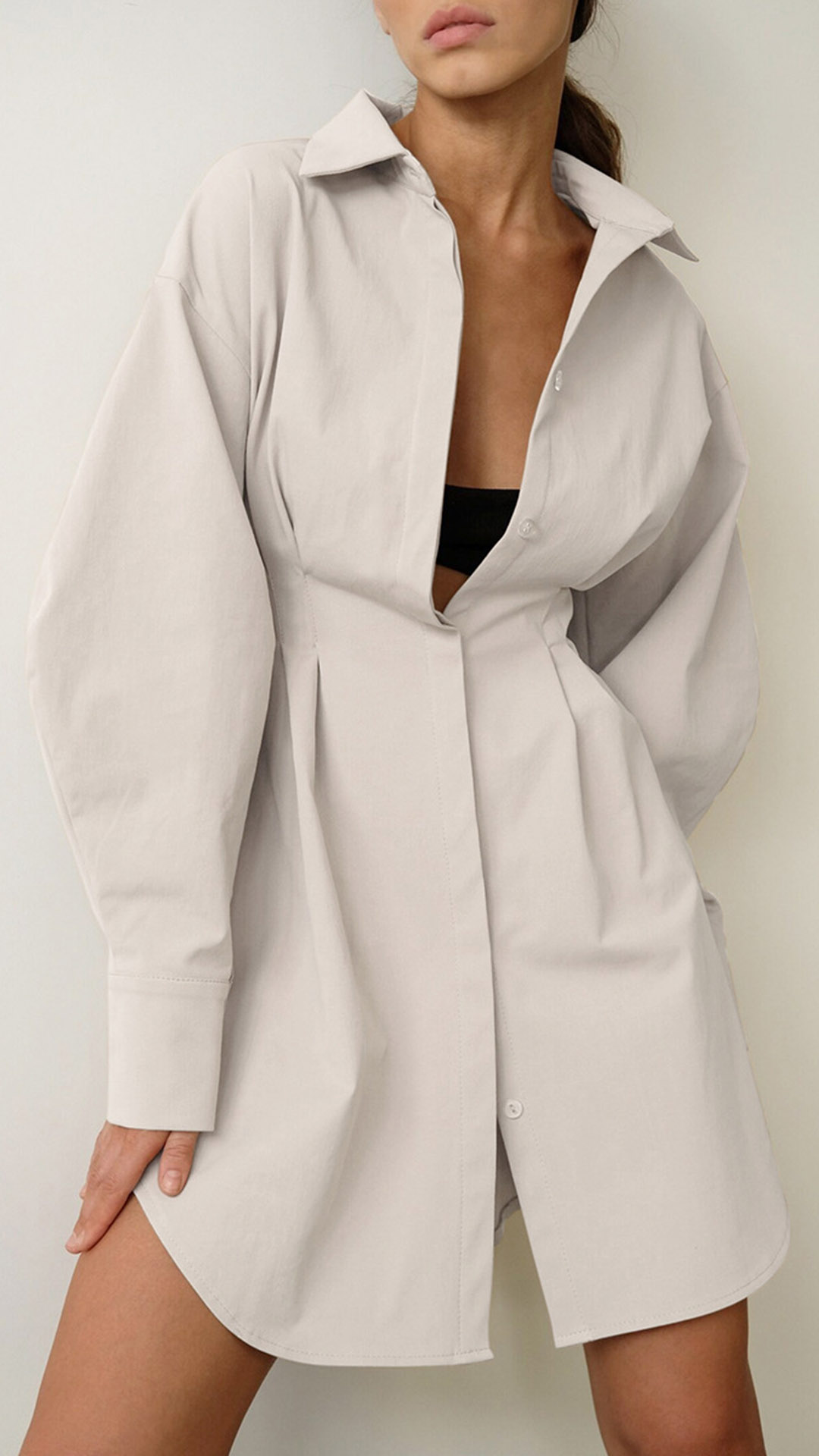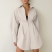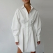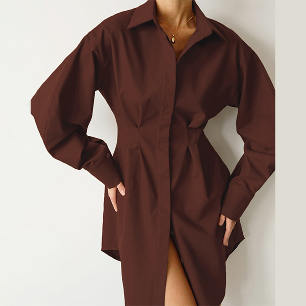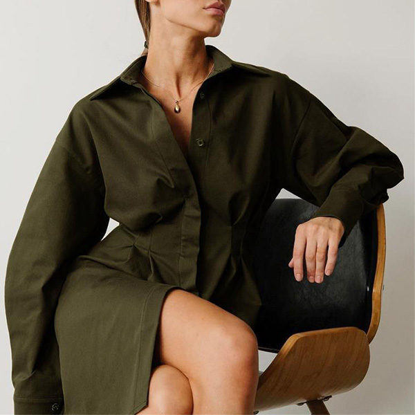 OL Style Long Sleeve POLO Collar High Waist Arc Hem Shirt Dress
