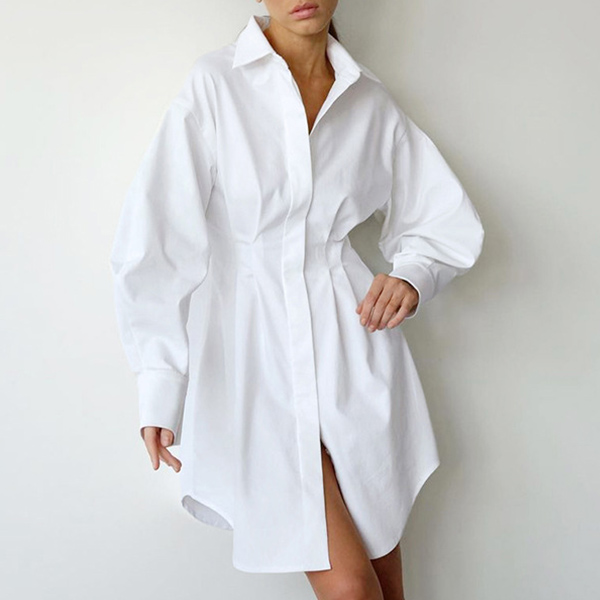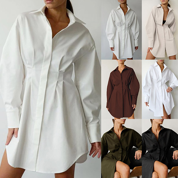 Don't know what to wear on your busy workdays? Then you can make your eyes focused on this shirt dress! Solid color style,finished with long sleeve,POLO collar,arc hem and high waist design,this dress definitely can give you a cozy yet stylish daily style.