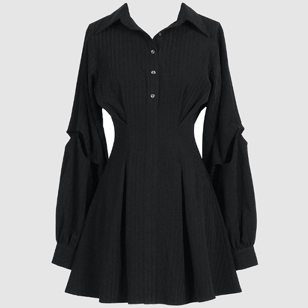 It is a good chance to update your daily style with the help of this shirt dress. The classic and flattering black tone can help you look more slender,and the unique long sleeve design can easily boost its entire charm. No matter for your busy workdays or weekend out,this dress can be your wise choice.