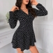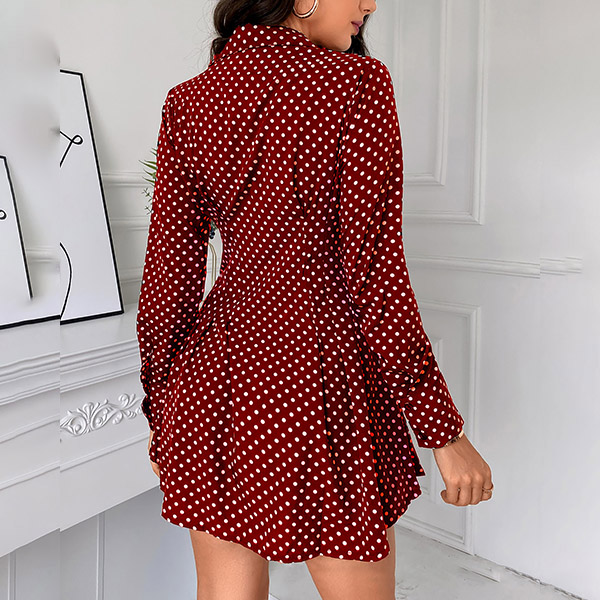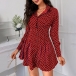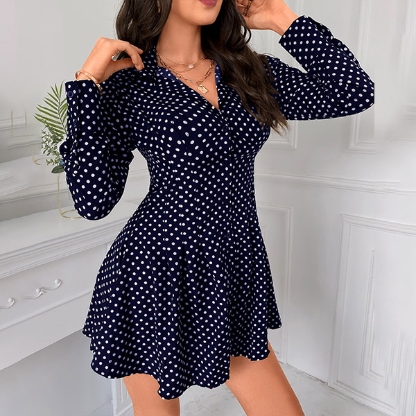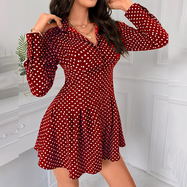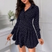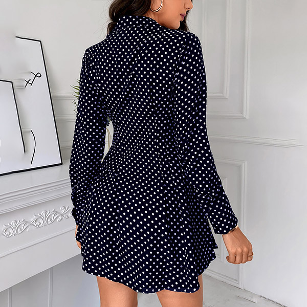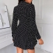 OL Style Long Sleeve POLO Collar High Waist Dots Printed Shirt Dress