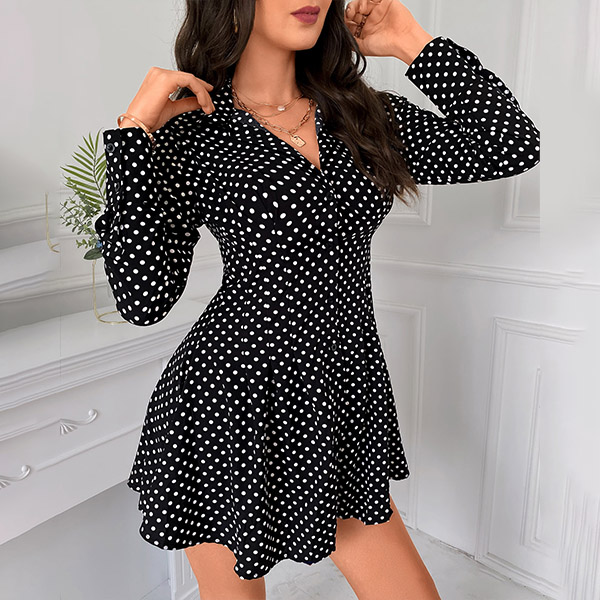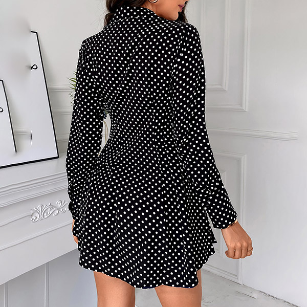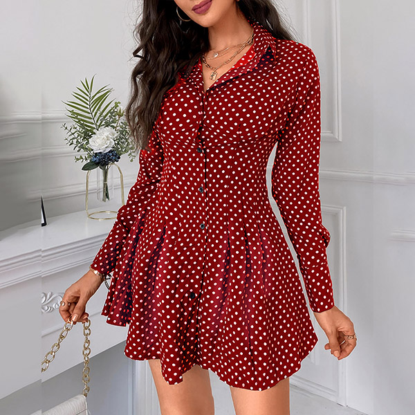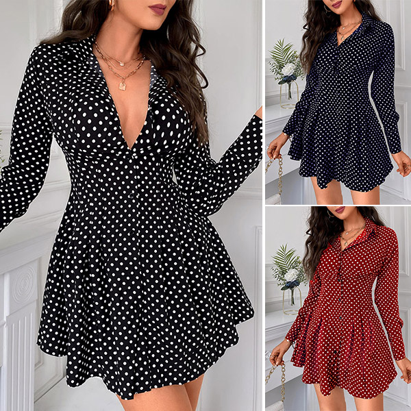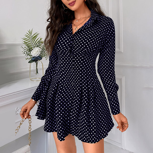 When you have no time to think about what to wear for your busy workdays,then you can make your eyes focused on this shirt dress. The dots printed details make this piece look so eye-catching and playful. Finished with long sleeve,POLO collar and high waist design,this piece can make you look delicate yet stylish.