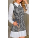 OL Style Long Sleeve POLO Collar Pleated Hem Slim Fit Mock Two-piece Plaid Dress