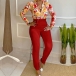 OL Style Long Sleeve POLO Collar Printed Shirt + High Waist Pants Two-piece Set