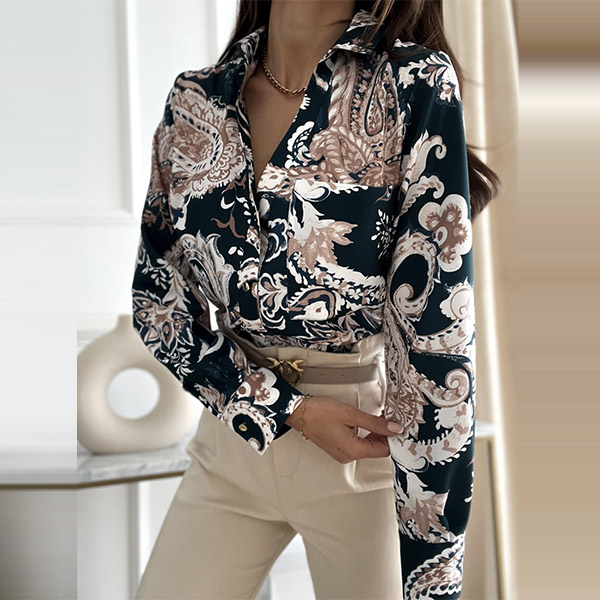 Don't like too simple and dull shirts? Then you can just have a try this piece. Its chic printed details make this piece look so attractive and eye-catching,while the long sleeve,POLO collar and single-breasted design maintain the classic design style. Another design highlight is that this piece can be matched with different style bottoms.