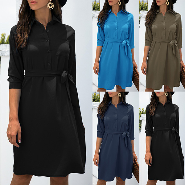 For these busy working girls,this delicate yet stylish shirt dress would be their perfect choice. Crafted in a solid color,with long sleeve,POLO collar and lace-up design,this dress not only can showcase your waistline,but also can give you a stylish daily look. You can trust in this shirt dress to have a charming working look!