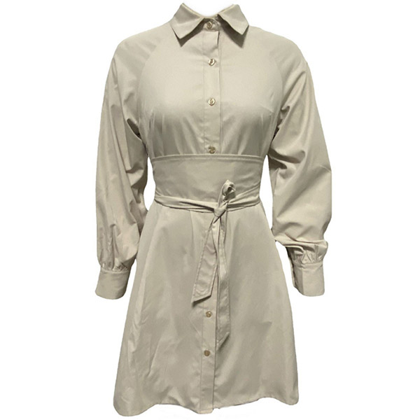 As for a delicate and stylish working look,you can just have a look at this shirt dress. Solid color style,finished with long sleeve,POLO collar and single-breasted design,this piece is a good weapon to express your charm and beauty. And the lace-up design at the waist part can better showcase your figure and waistline. Attracted? Then don't miss this chance!