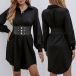 OL Style Long Sleeve POLO Collar Single-breasted Shirt Dress with Girdle