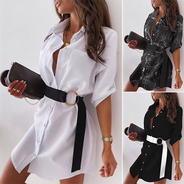 As for a delicate and charming working look,you can just have a try this shirt dress. It is finished with long sleeve,POLO collar and single-breasted design,classic yet stylish. Meanwhile,the soft,breathable fabric can ensure you a comfortable day. Comes with a waist strap design,which will make this piece look more attractive and stylish.