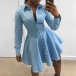 OL Style Long Sleeve POLO Collar Single-breasted Shirt Dress