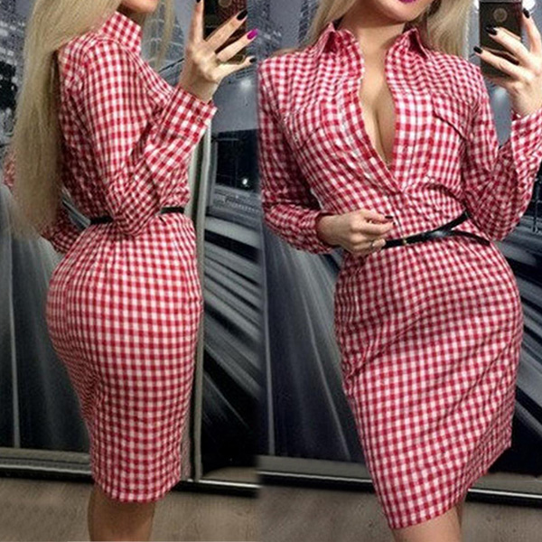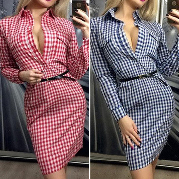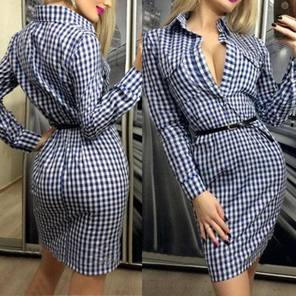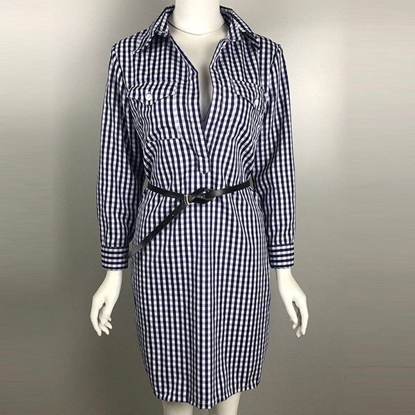 When stepping into your office with this dress,you would arouse your colleagues' attention. Plaid style,designed with long sleeve,