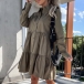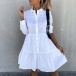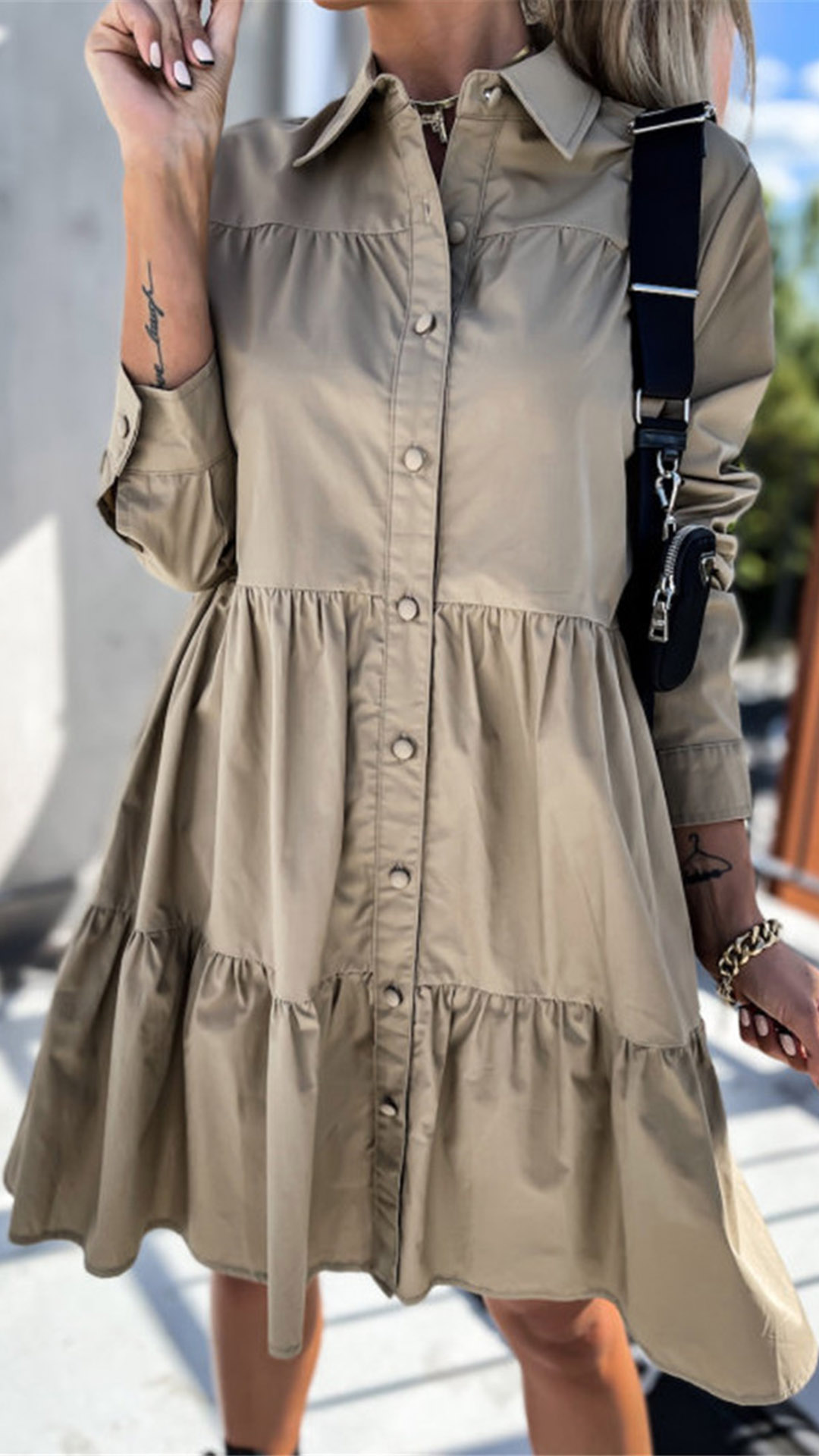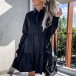 OL Style Long Sleeve POLO Collar Solid Color Loose Shirt Dress