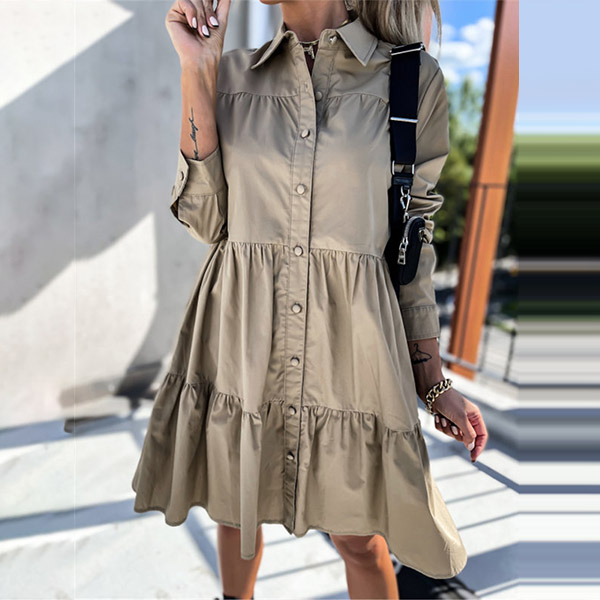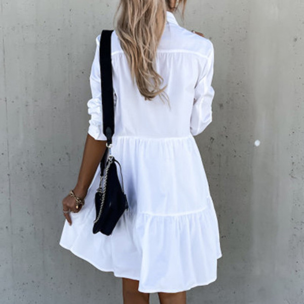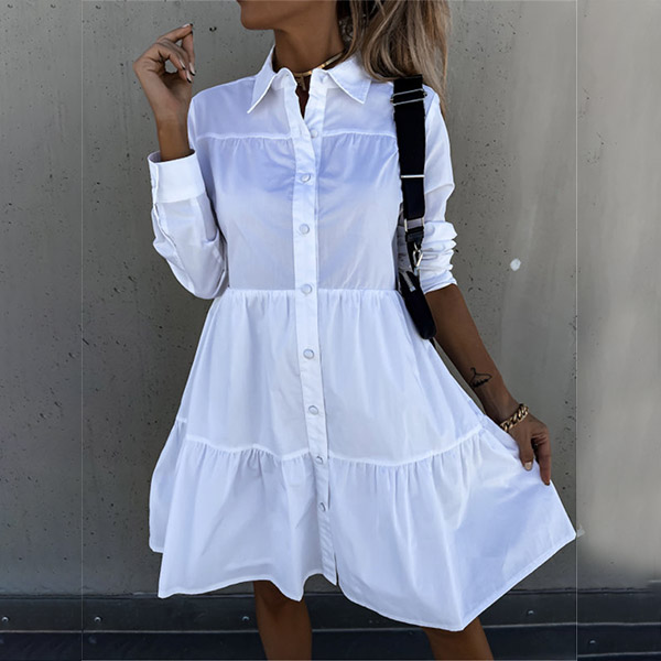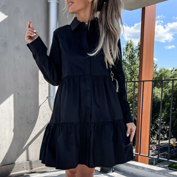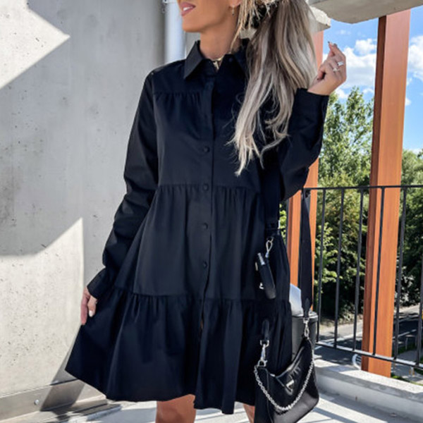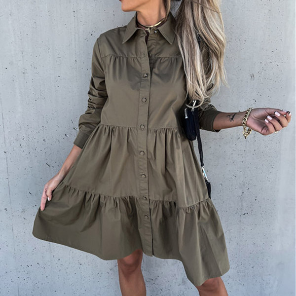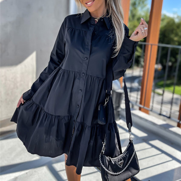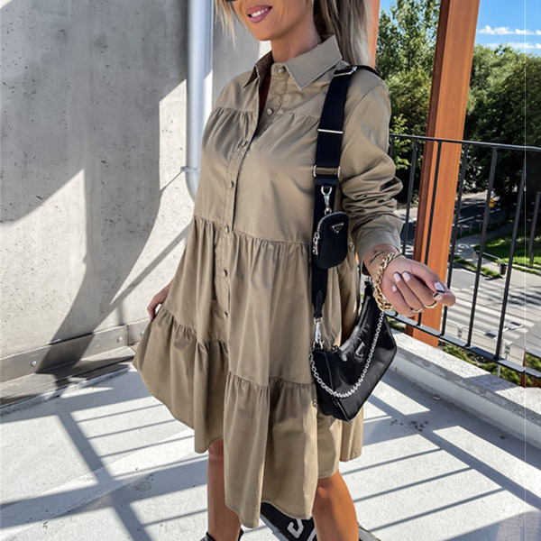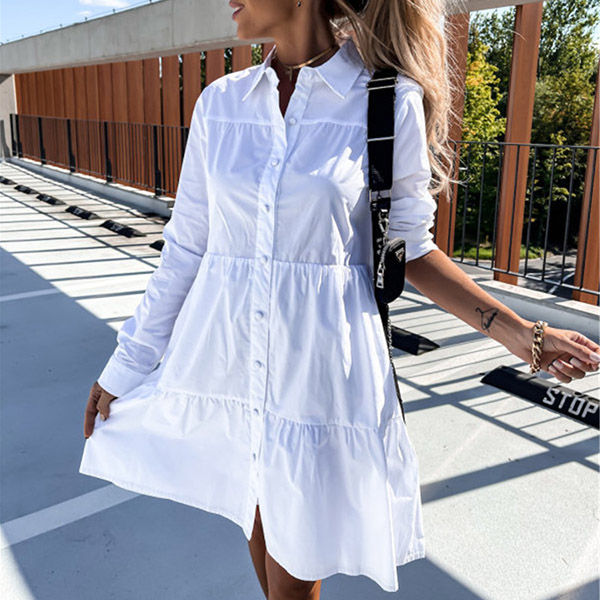 For your busy workdays,you can just have a try this shirt dress. It comes with a solid color,crafted from soft,breathable fabric and a loose silhouette,this shirt dress can ensure you a comfortable day,while the long sleeve,POLO collar and single-breasted design maintain the classic design style.