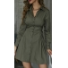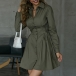 OL Style Long Sleeve POLO Collar Solid Color Shirt Dress