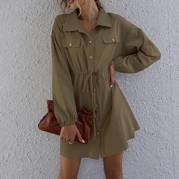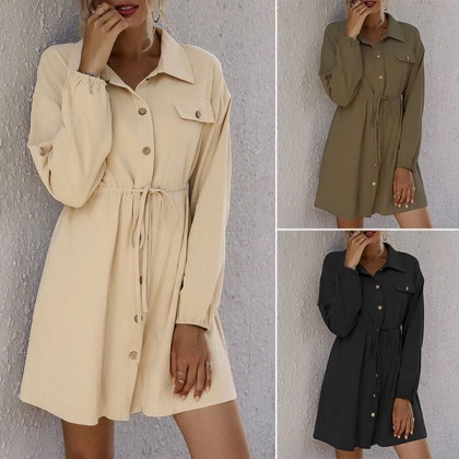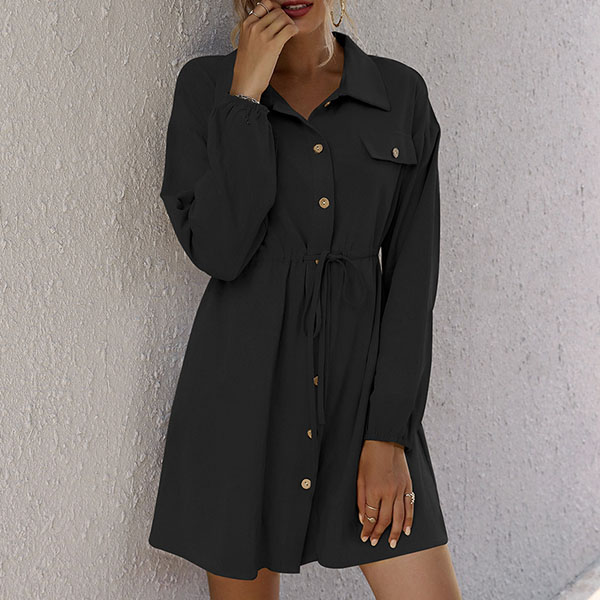 For your busy workdays,you can trust in this shirt dress to have a delicate and charming working look. Boasts a solid color,finished with long sleeve,POLO collar and single-breasted design,this piece definitely knows how to give you a cozy yet stylish style.