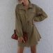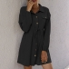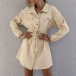 OL Style Long Sleeve POLO Collar Solid Color Shirt Dress