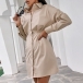 OL Style Long Sleeve POLO Collar Solid Color Shirt Dress