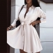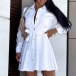 OL Style Long Sleeve POLO Collar Solid Color Shirt Dress