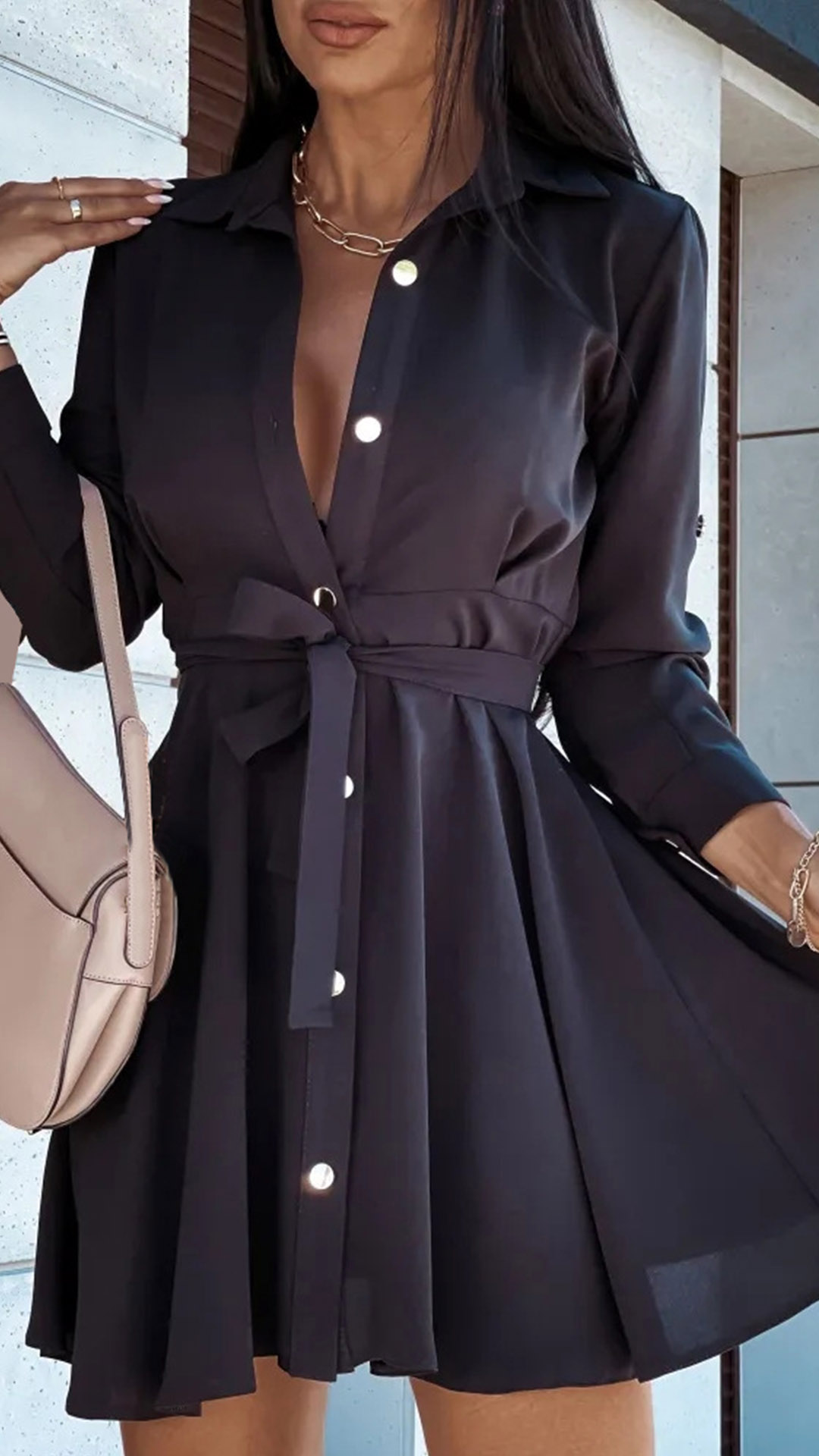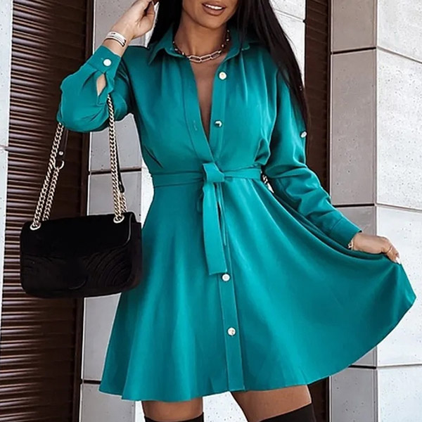 When the holidays are over,you can just slip into this shirt dress to greet your busy workdays. Solid color style,finished with long sleeve and polo collar design,simple,classic yet stylish. Comes with a waist strap design,which can better showcase your figure. Attracted? Then invite it to your wardrobe!