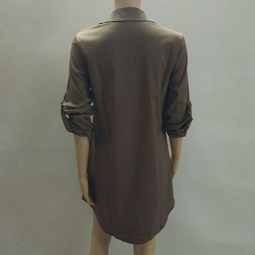 Your wardrobe should have a classic and stylish shirt dress! Look at this one:featuring a solid color,