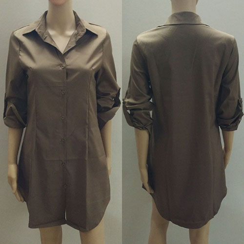 with long sleeve and a basic collar,simple and stylish. We think adding a waistband would make