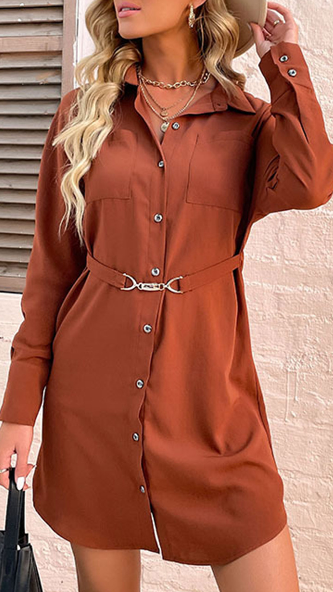 When it comes to a delicate yet stylish working look,then you can just turn to this shirt dress for help. It comes with a solid color,finished with long sleeve and POLO collar design,classic yet stylish. Comes with a thin waistband design,which not only can enrich the design style,but also can boost your entire charm. Add this piece to your wardrobe and it won't let you disappointed!