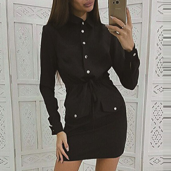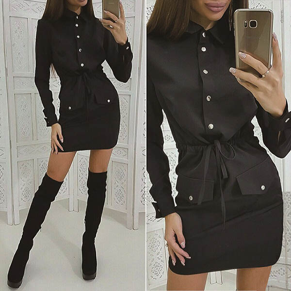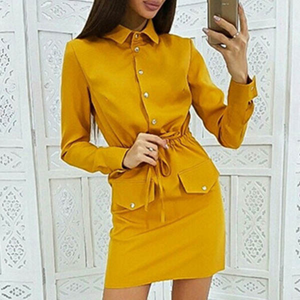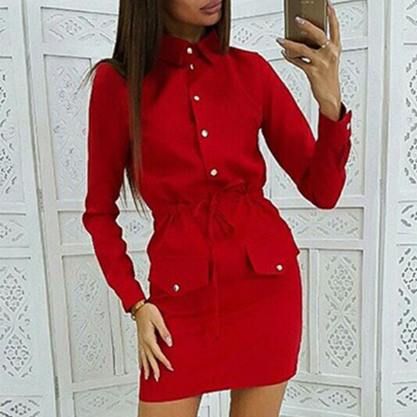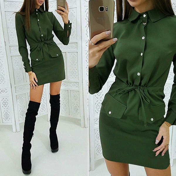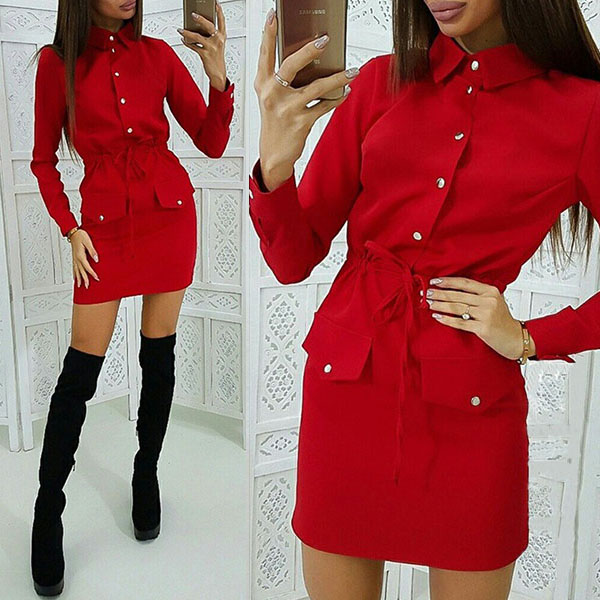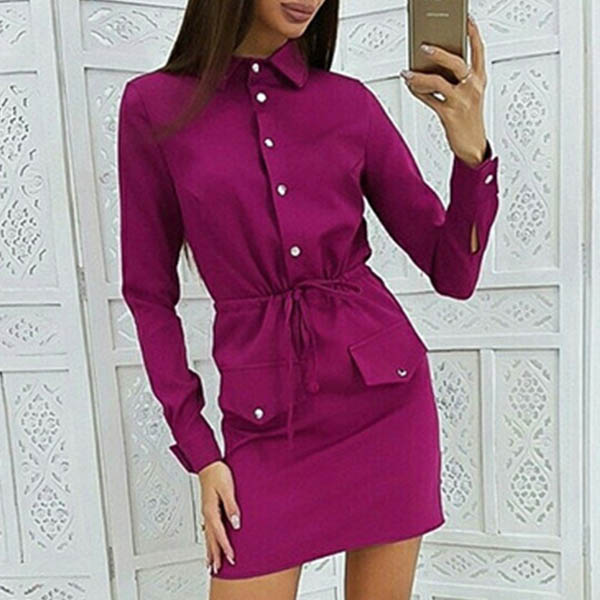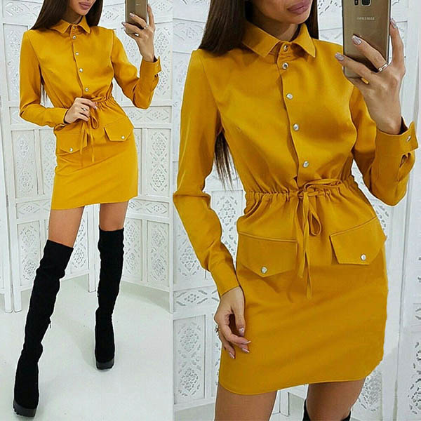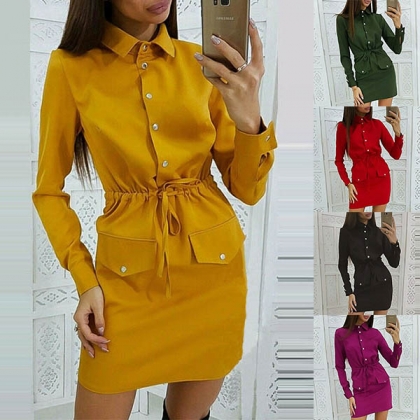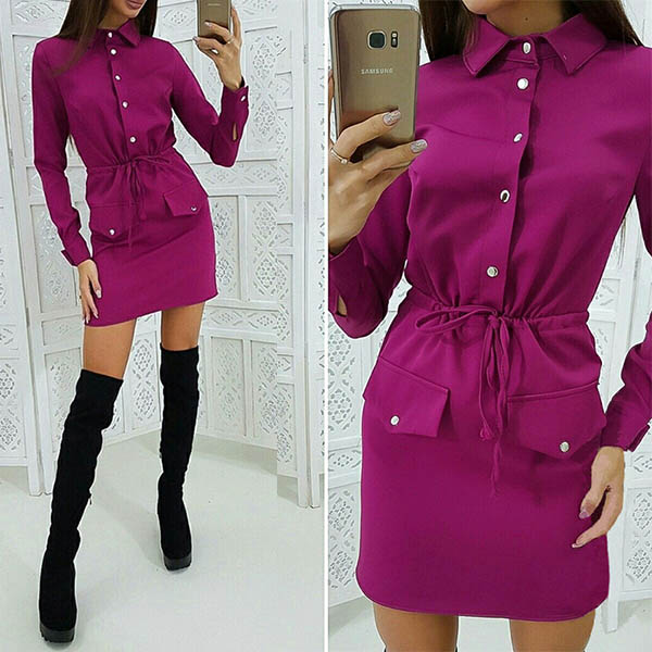 If you are an office lady,this delicate and stylish dress can easily arouse your attention. Solid color style,finished with long sleeve and POLO collar design,the drawstring waist and fit silhouette design will highlight your figure. Your style can have a boost when you wear this dress.