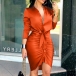 OL Style Long Sleeve POLO Collar Solid Color Slim Fit Shirt Dress