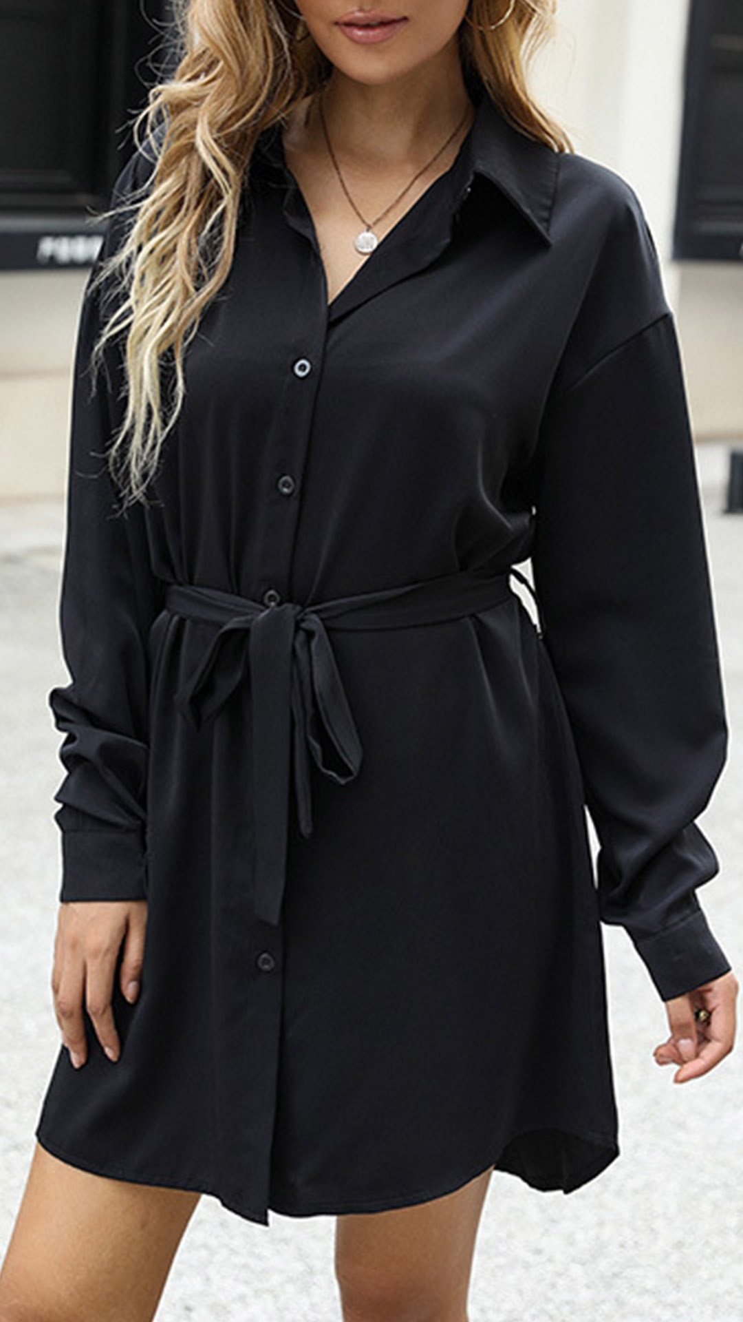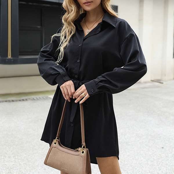For your busy workdays,this cozy yet stylish shirt dress can easily strike your mind. Comes with a classic black tone,finished with long sleeve,POLO collar and single-breasted design,this shirt dress knows how to give you a cozy yet stylish daily look. And the tie-belt design at the waist part can help showcase your waistline and figure.