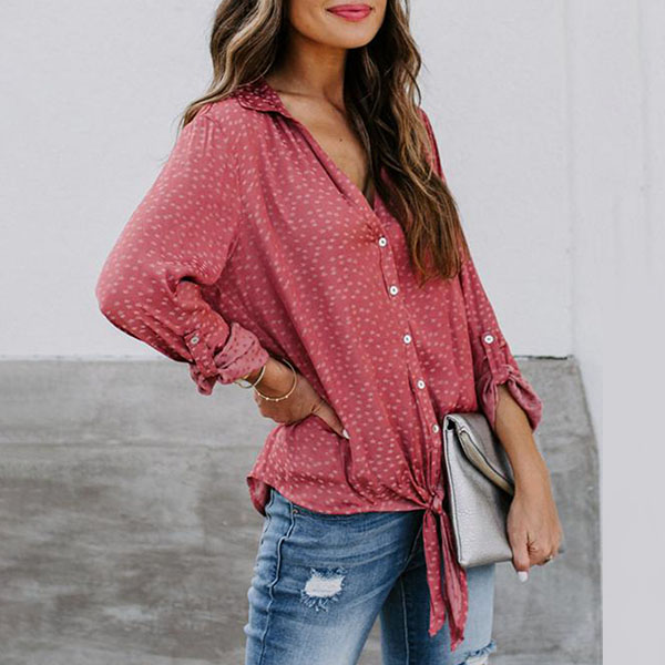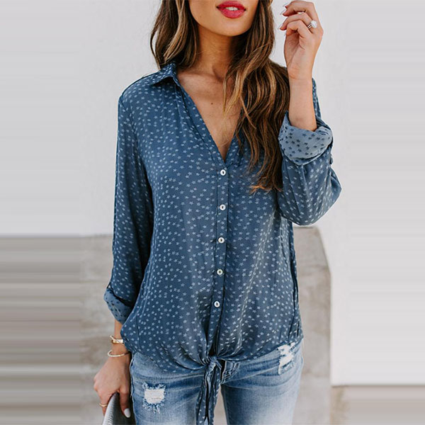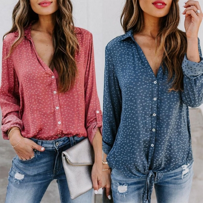 For these office ladies,a cozy,stylish and all-match shirt is a wardrobe essential. So what are you waiting for if you still not have one? This piece is designed with long sleeve,POLO collar and single-breasted design,classic yet stylish. The star printed details will make this piece look more attractive. Try to match with your favourite pants for a delicate,stylish working look.