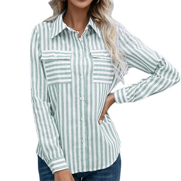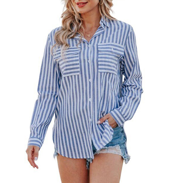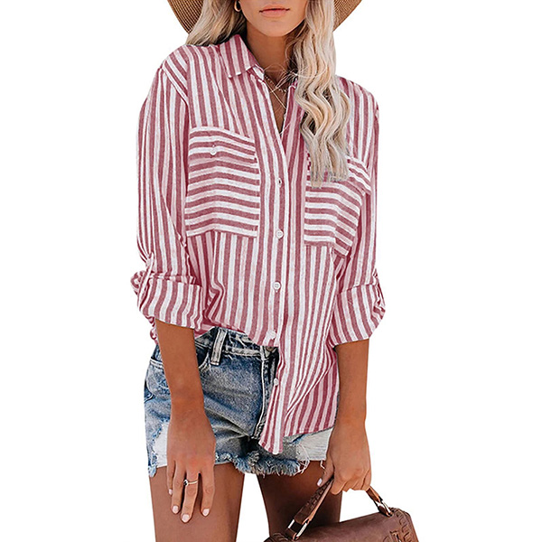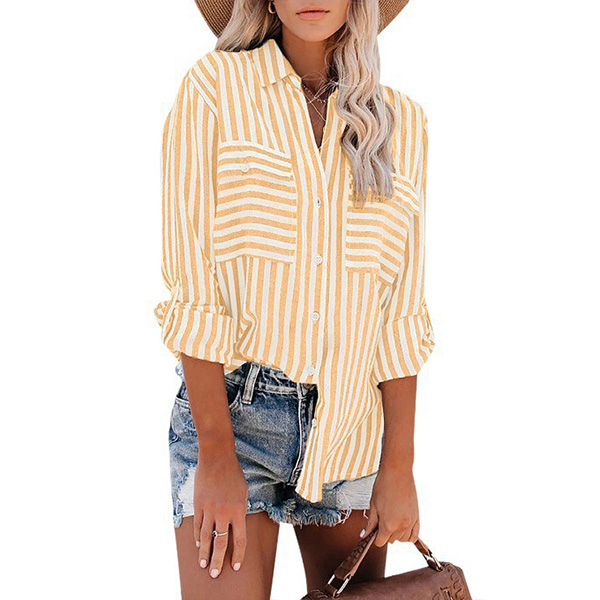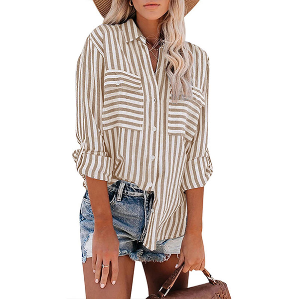 For these office ladies,this cozy,stylish and all-match shirt can easily strike their minds. The long sleeve,POLO collar and single-breasted design maintain the classic yet stylish design style,while the stripe element design will further enhance its charm. You can trust in this piece to give you a simple but delicate working look.