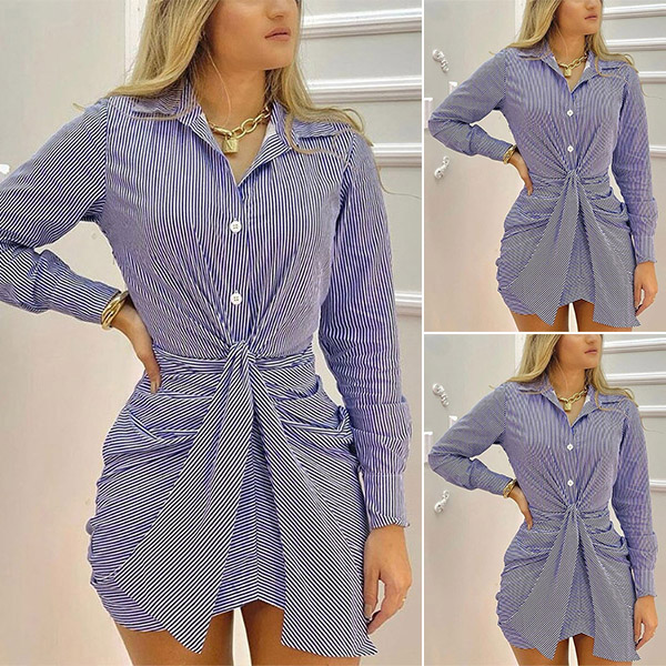 You can easily update your daily style and boost your entire charm with the help of this stripe shirt dress. The most distinctive design of this piece is the twisted and tie-belt design at the waist part. For your workdays,when you step into your office with this dress,you can easily win more eyes.