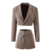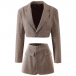 OL Style Long Sleeve Short-style Plaid Blazer Coat + High Waist Skirt Two-piece Set
