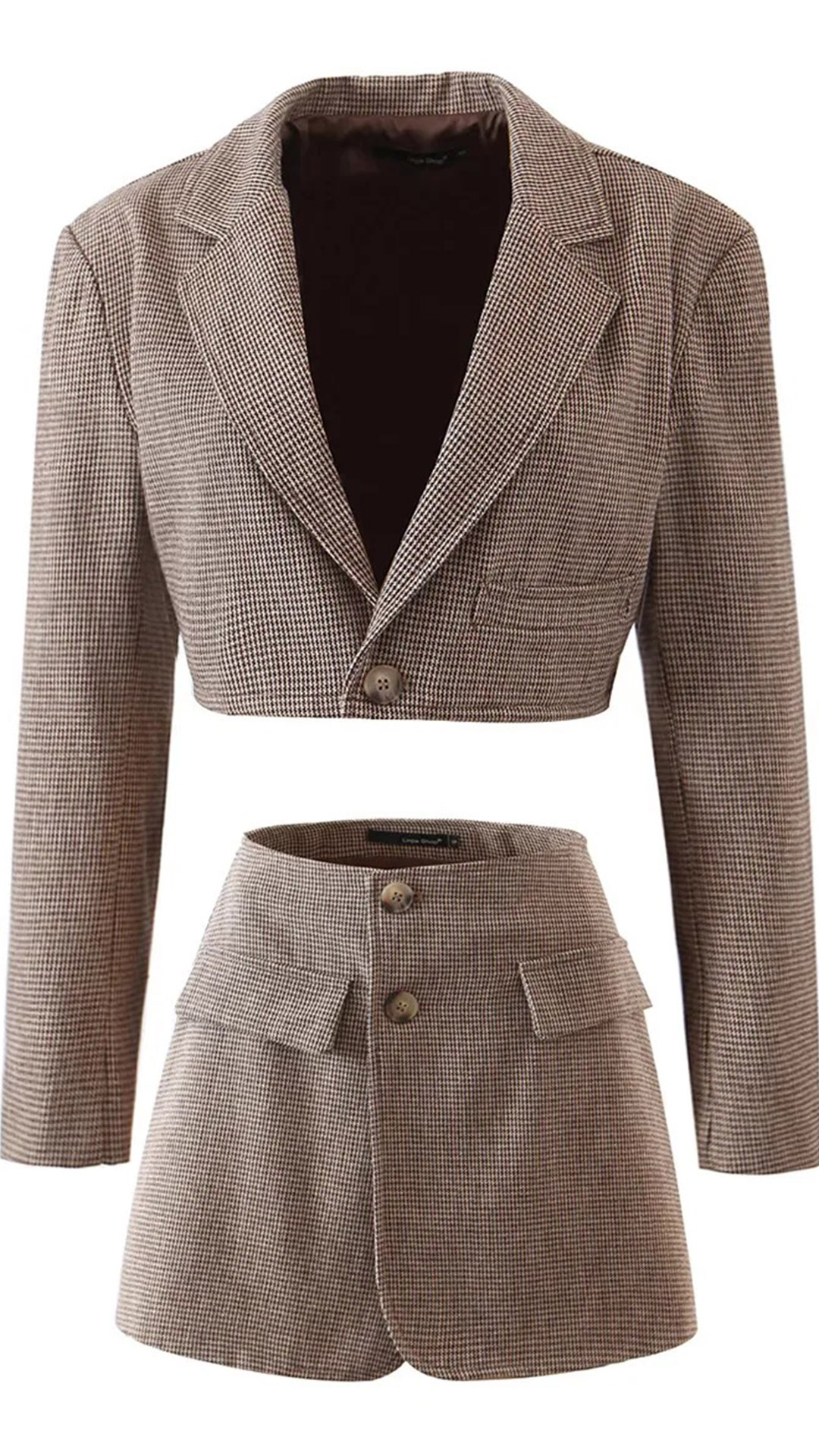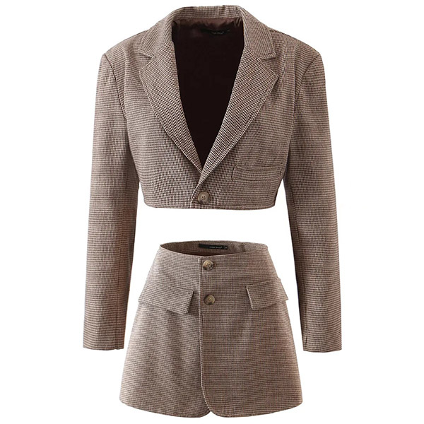 You are sure to catch more envious eyes when you dress yourself up with this two-piece set. The plaid element design makes it look not so simple and dull. Including a long sleeve short-style blazer coat and a high waist skirt,this two-piece set would easily strike your mind.