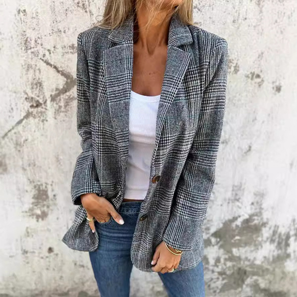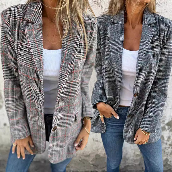 OL Style Long Sleeve Single-breasted Slim Fit Plaid Coat