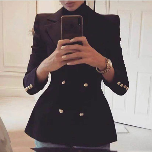 OL Style Long Sleeve Slim Fit Double-breasted Blazer Coat